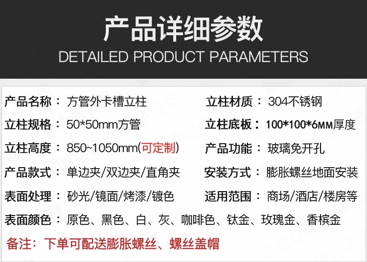* 配件的规格、材质、表面处理可以根据客户的要求更改