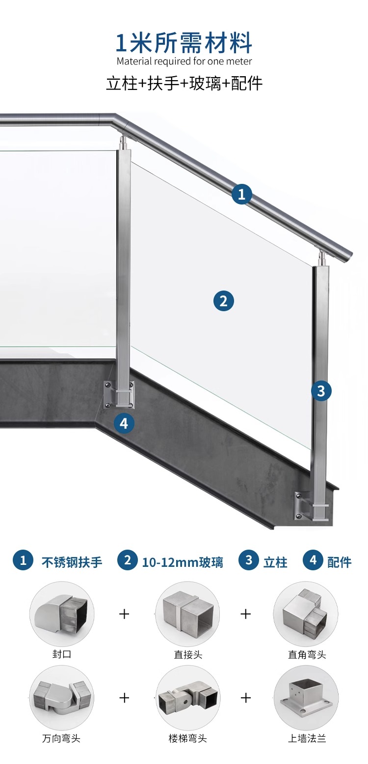 栏杆高度(一般在 900mm-1200mm之间,具体规格可按用途设定)