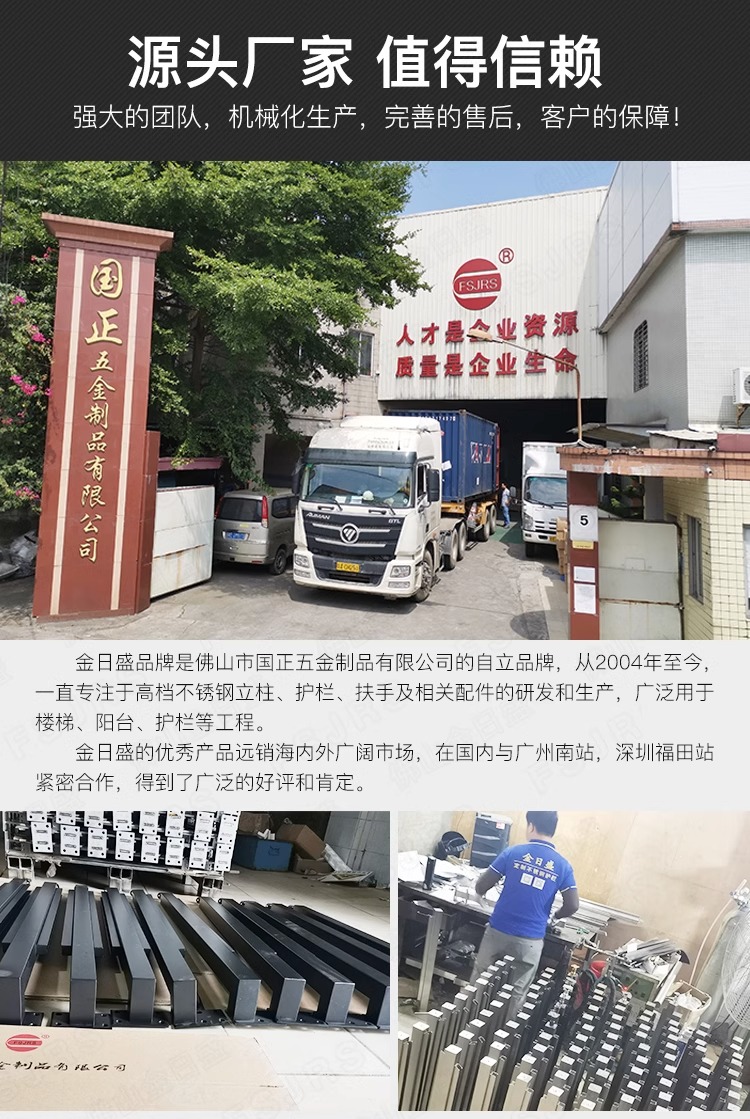 国正专注不锈钢护栏行业18年,楼梯立柱行业资深专家。材料我们采用精炼炉原料钢带,国标304材质。作为佛山立柱行业的常青藤,我们是市政长期合作伙伴,广州白云机场,广州小蛮腰铁塔、广州南站、山西大同站、深圳福田站、西安地铁等项目均取得市政府的认可和满意。此外我们有多个核算工程师,可免费帮您提供定制加工服务!!!佛山金日盛五金制品有限公司 (fsjrs.com)