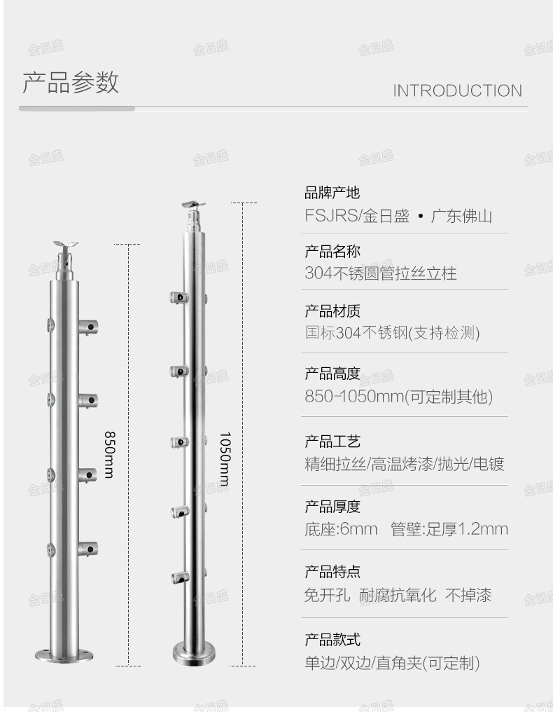不锈钢家用式006圆管拉丝立柱,38圆管砂光,高度850-1050mm,支持跨境出口。